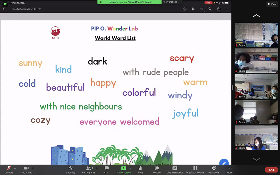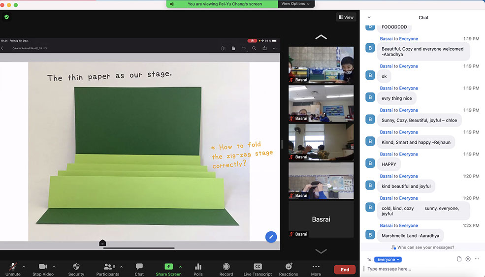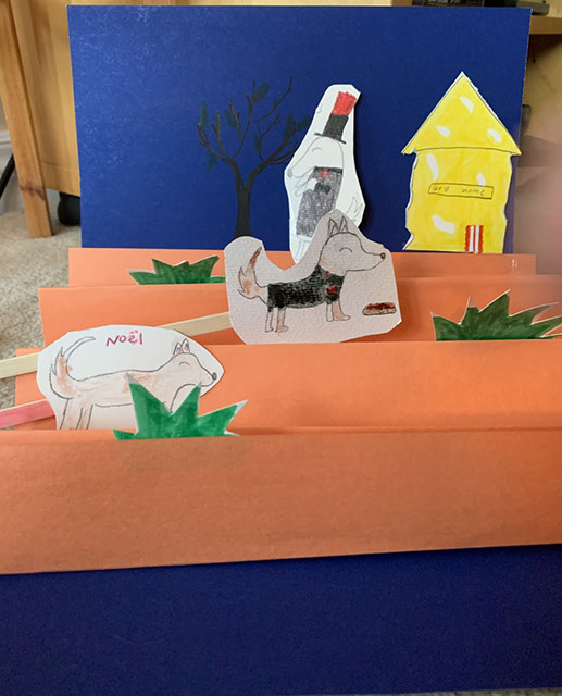 Students discussed what kind of world they would like to live in, and were asked to think about the unique needs and preferences of each of their animals as they imagined an environment in which all could live happily and comfortably. They then created this environment as a foldable paper puppet theatre where all their animals could play and have adventures together.